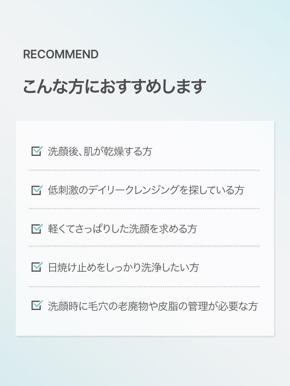 ●弾力のある泡立ち:細かい泡が肌の隅々まで行き渡り、毛穴の汚れを優しく除去します。